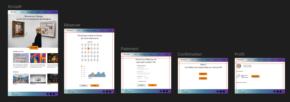 • Wireframes papier et digitaux pour poser les bases d’une navigation fluide.